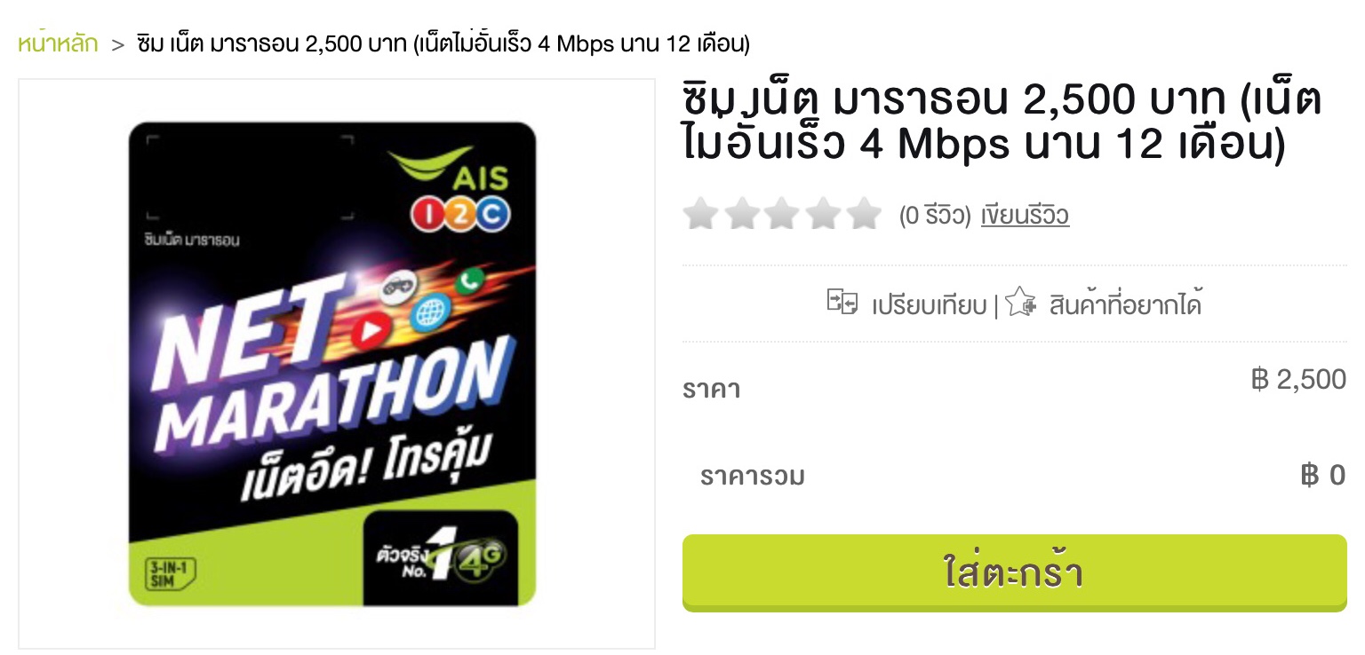 ซิมมาราธอน ais เน็ต 4Mb 2500บาท