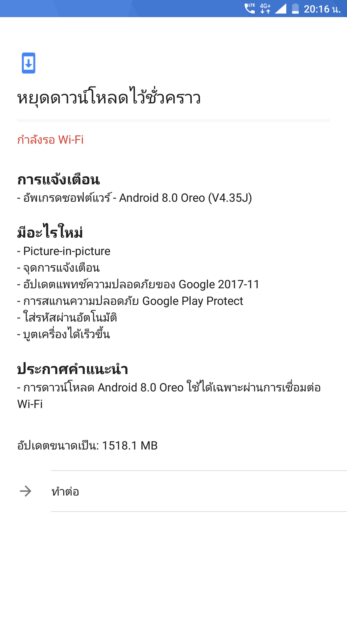 Nokia8 แจ้งเตือนอัพ 8.0 oreo