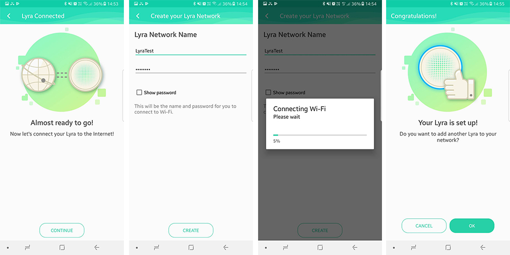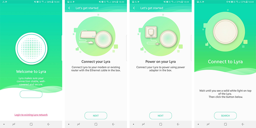 ก่อนอื่นเราจะต้องทำการตั้งค่า Lyra START ให้เสร็จเป็นอันดับแรกโดยการติดตั้งแอพ Lyra จากนั้นเปิดแอพขึ้นมาจะมีสอนวิธีการตั้งค่าซึ่งง่ายมากๆ 1.เสียบสาย LAN จากตัว router 2.เสียบปลั๊กไฟ 3.กดค้นหาตัว Lyra 4.ตั้งค่า username กับ password ของเจ้าของ 5.เลือกประเภทของห้องที่วาง Lyra 6.ตั้งชื่อ Wi-Fi พร้อมรหัส เสร็จแล้วครับ