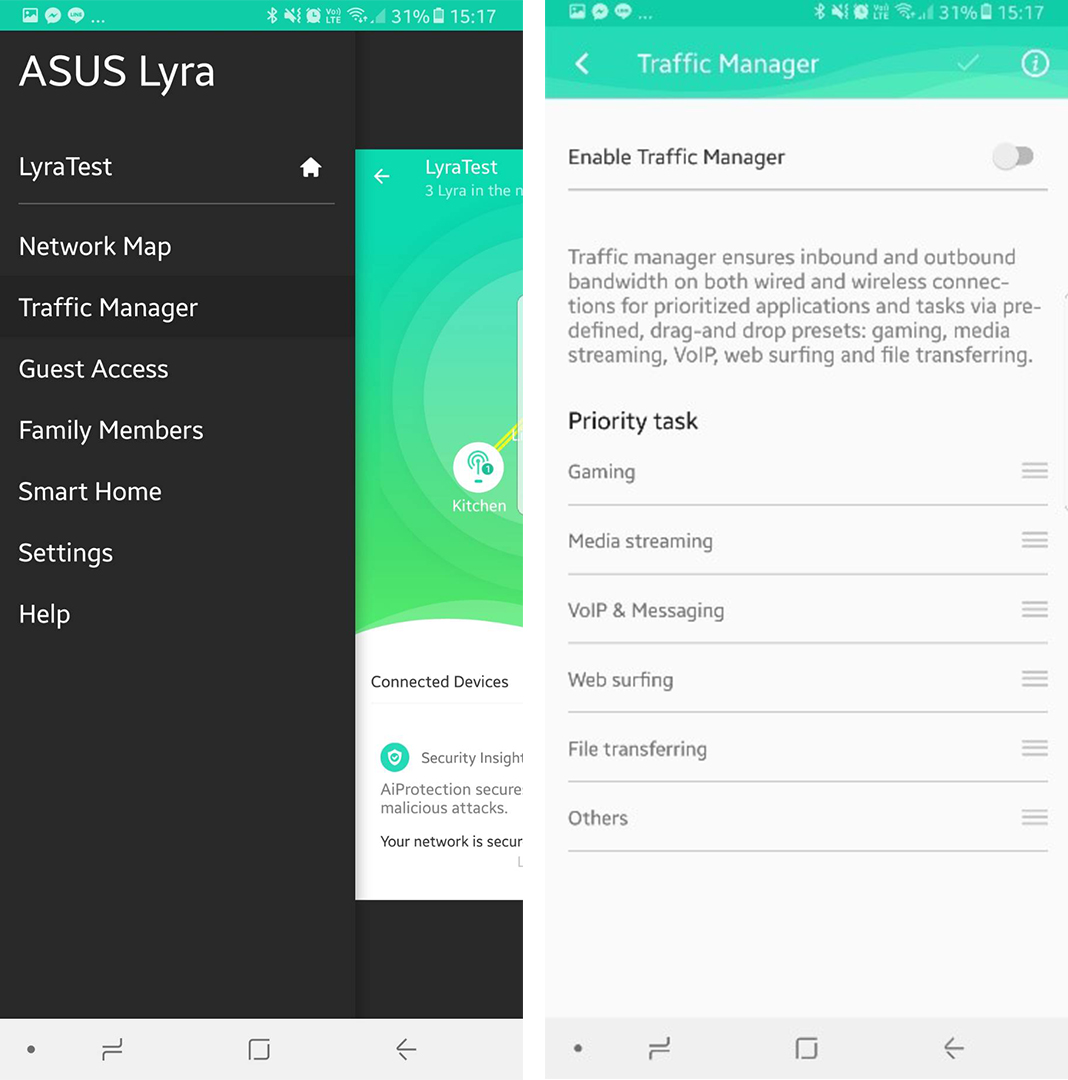 ส่วนฟีเจอร์อื่นๆของ Lyra ก็มาให้มาครบไม่ว่าจะเป็น Traffic Manager สามารถช่วยจัดการแบนวิธเครื่องลูกข่ายจากการใช้งานในแต่ละประเภท เช่นเน้นว่าเล่นเกมลื่นไว้ก่อน ก็เอา Gaming ไว้บนสุดเลย ส่วนการใช้งานที่โหลดหนักๆเช่นพวกโหลดบิท หรือดาวน์โหลดไฟล์ ก็เอาไว้ล่างๆ ตัว Lyra จะจัดการให้เอง
