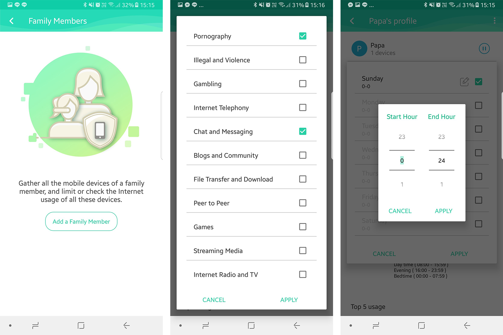 Family Members ช่วยป้องกันการเข้าถึง website ที่ไม่เหมาะสม หรือ protocol ต่าง ๆ เช่นอุปกรณ์ของลูก เราจะตั้งบล็อกเว็บต้องห้ามโดยเฉพาะก็ได้ หรือตั้งเวลาให้ลูกเล่นเน็ตได้เฉพาะบางช่วงเวลาก็ทำได้