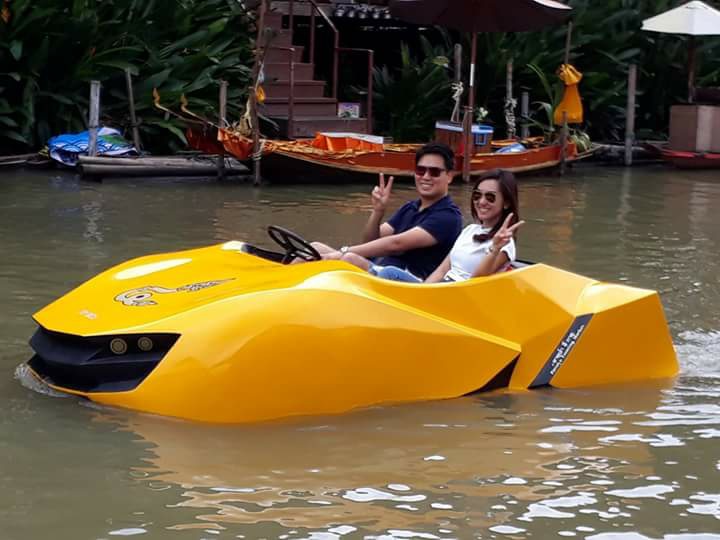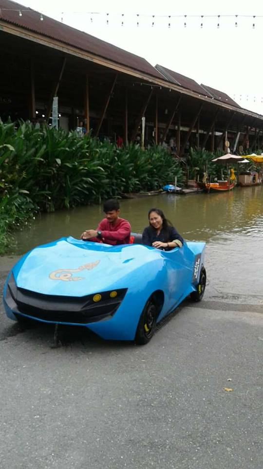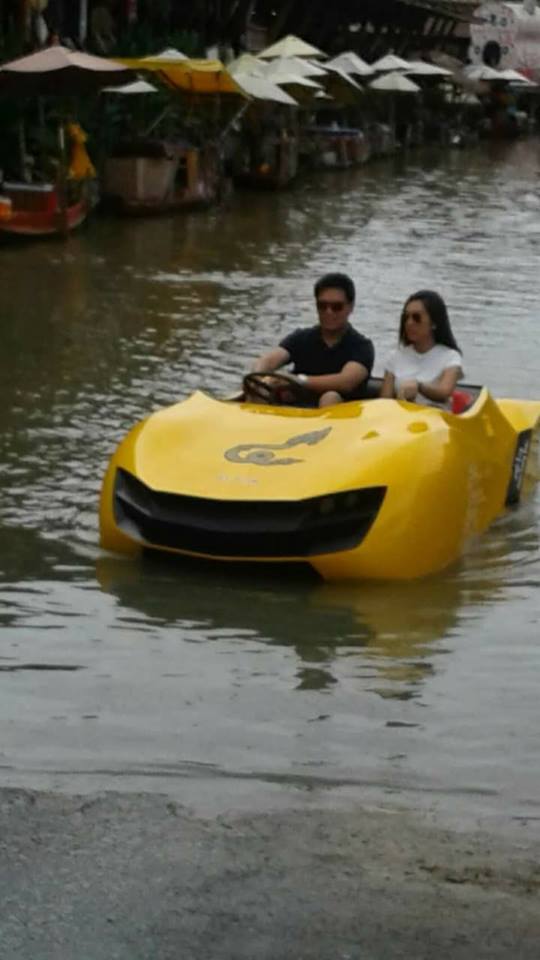เปิดตัวรถไฟฟ้าสะเทินน้ำ สะเทินบก สำหรับใช้ในที่ท่องเที่ยวเช่นตลาดน้ำ ฝีมือโดย คุณวีระศักดิ์ แป้นพ่วง คนเดิมครับ