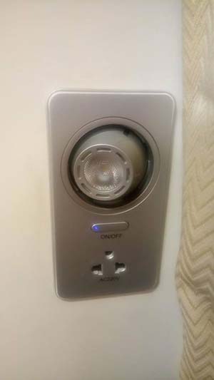 และคนยุคดิจิตอลอย่างเราๆ ความสุขที่สุดในชีวิตคือการมีปลั๊กไฟให้เสียบนี่ล่ะค่ะ พ่วงมากับโคมไฟดวงน้อย (แสงน้อย ไม่เหมาะกับการอ่านหนังสือนะคะ) ส่วนจุดที่ติดใจมากสุด หนีไม่พ้นห้องน้ำค่ะ เพราะเล็กกระทัดรัดทันสมัย อุปกรณ์ครบครันและสะอาด ภายในตัวห้องมีกลิ่นหอมจางๆ ติดอยู่ในนี้ทั้งคืนก็ยอมมมม