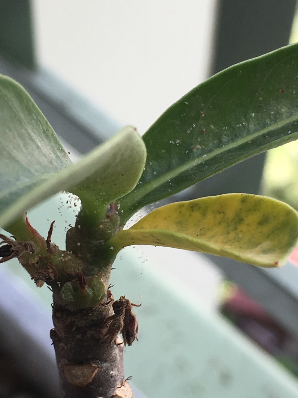 มีเม็ดๆ ดำๆ เล็กๆ บนใบ ใต้ใบมีใบคล้ายใบแมงมุม