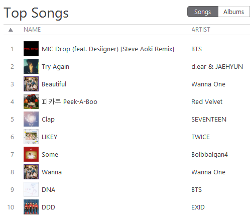 [K-POP] รายงานชาร์ต Top 10 K-POP Songs Apple Music & iTunes Store Thailand (27-Nov-17)