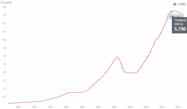 ในตอนนี้ประเทศไทยมีระดับรายได้ 5,640 USD โดยเฉลี่ยที่ผ่านมาเติบโตประมาณ 4.5% นั้นหมายความว่าถ้าเราลองคำนวณดูจะพบว่า