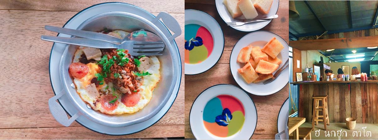 เมนูที่ต้องสั่งก็จะเป็น "ขนมปังสังขยา" มีทั้งแบบขนมปังนึ่งและขนมปังปิ้ง กับสังขยา 4 สีในจานเดียวกันกับไข่กะทะ