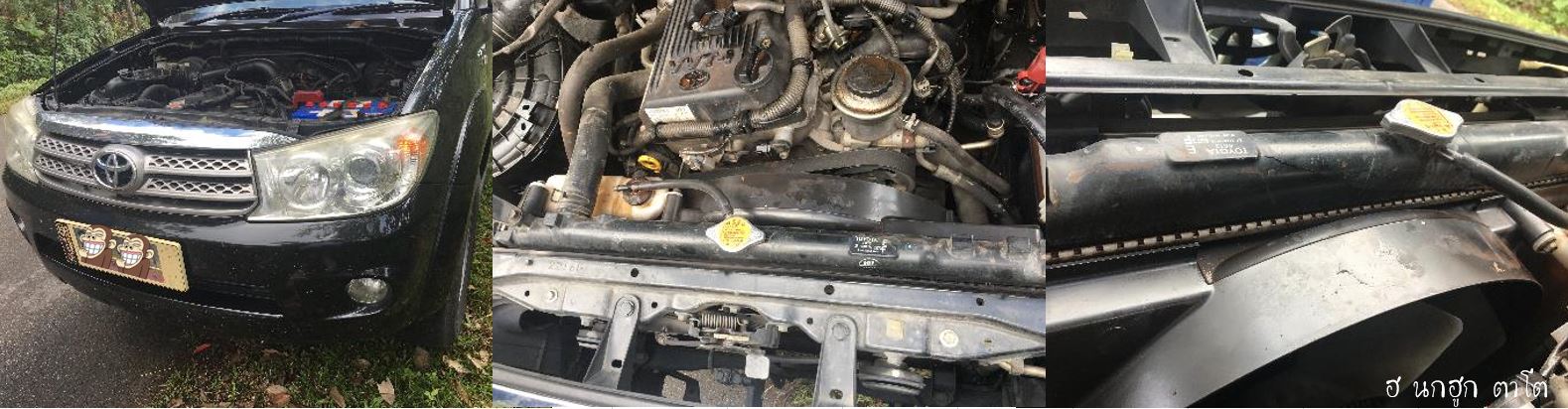 พอปิดฝากระโปรงรถดู ก็พบว่า มีน้ำ กระจายทั่วบริเวณ ซึ่งเป็นน้ำคล้ายมีสนิมปะปนอยู่ มองหน้ากันตาปริบๆ