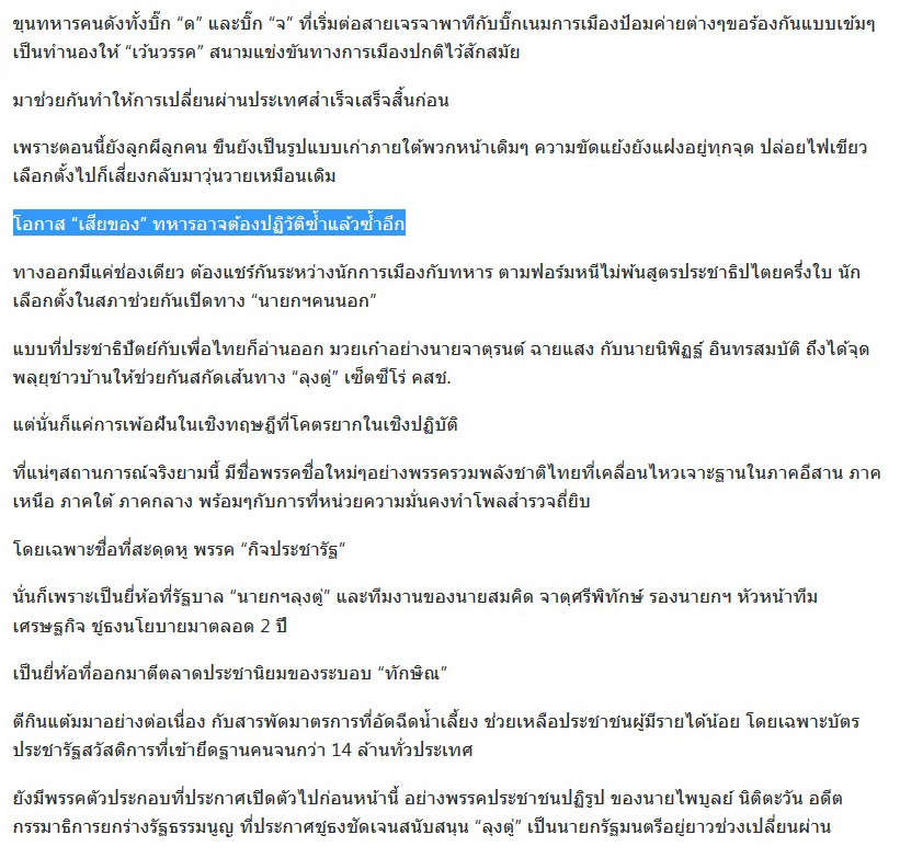 ทีมข่าวการเมืองไทยรัฐ บังอาจกล่าวหาทหารล่วงหน้าว่า จะปฏิวัติซ้ำอีก ...!