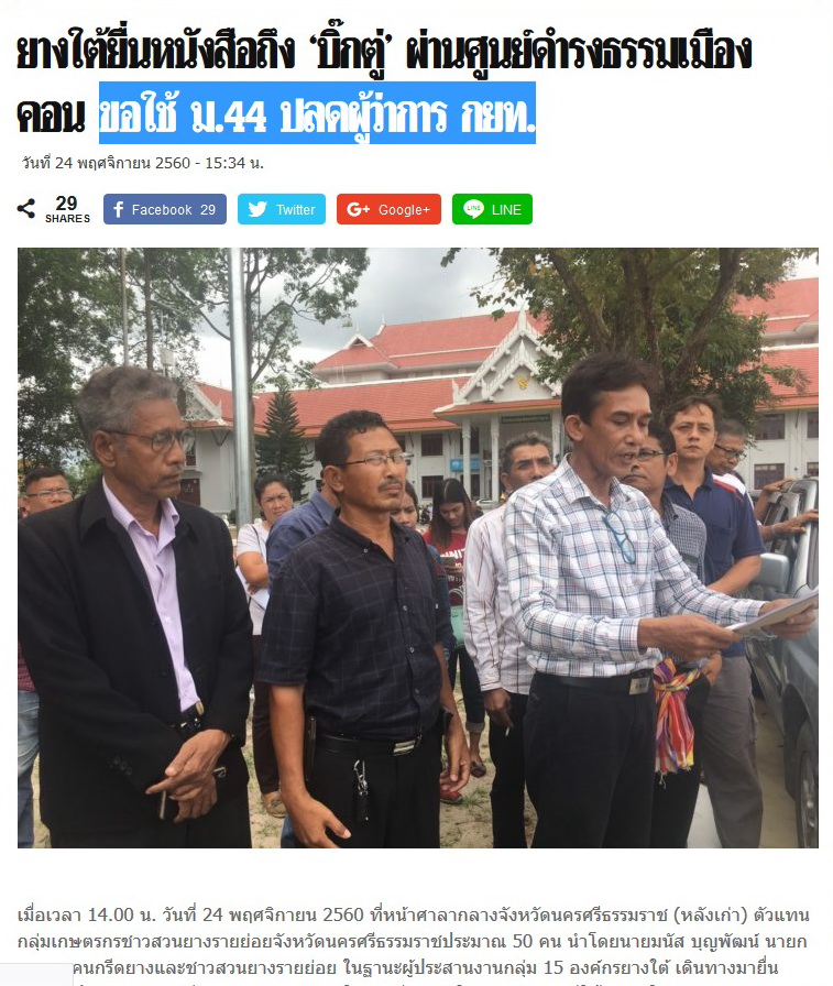 ชาวสวนยางใต้ รักประชาธิปไตย แต่ขอใช้ ม.44 ปลดผู้ว่าการยาง กยท. ...!