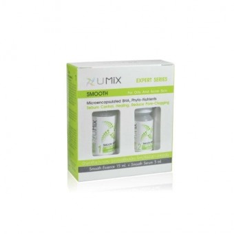 2.2 ยูมิกซ์ สมูท เซรั่ม เหมาะสำหรับผู้มีปัญหาสิว ผิวหน้ามัน รูขุมขนกว้าง ช่วยให้ผิวเนียนเรียบสูตรอ่อนโยนด้วยค่าความเป็นกรดด่างสมดุล pH 5.5 ด้วยเทคโนโลยีการกักเก็บโมเลกุลของกรดซาลิไซลิค หรือบีเอซเอในรูปแบบของแคปซูลขนาดเล็กซึ่งจะค่อย ๆ ปลดปล่อยบีเอซเอ โดยการแตกตัวอย่างต่อเนื่องช้า ๆทำให้ไม่ระคายเคือง ร่วมกับสารสกัดจากธรรมชาติ สูตรเฉพาะของ ยูมิกซ์ "ไฟโตนิวเดรียน " ช่วยควบคุมทุกปัจจัยของการเกิดสิวทำให้ผิวกลับมาเรียบเนียนขาวกระจ่างใสอย่างมีสุขภาพดีได้อย่างรวดเร็ว