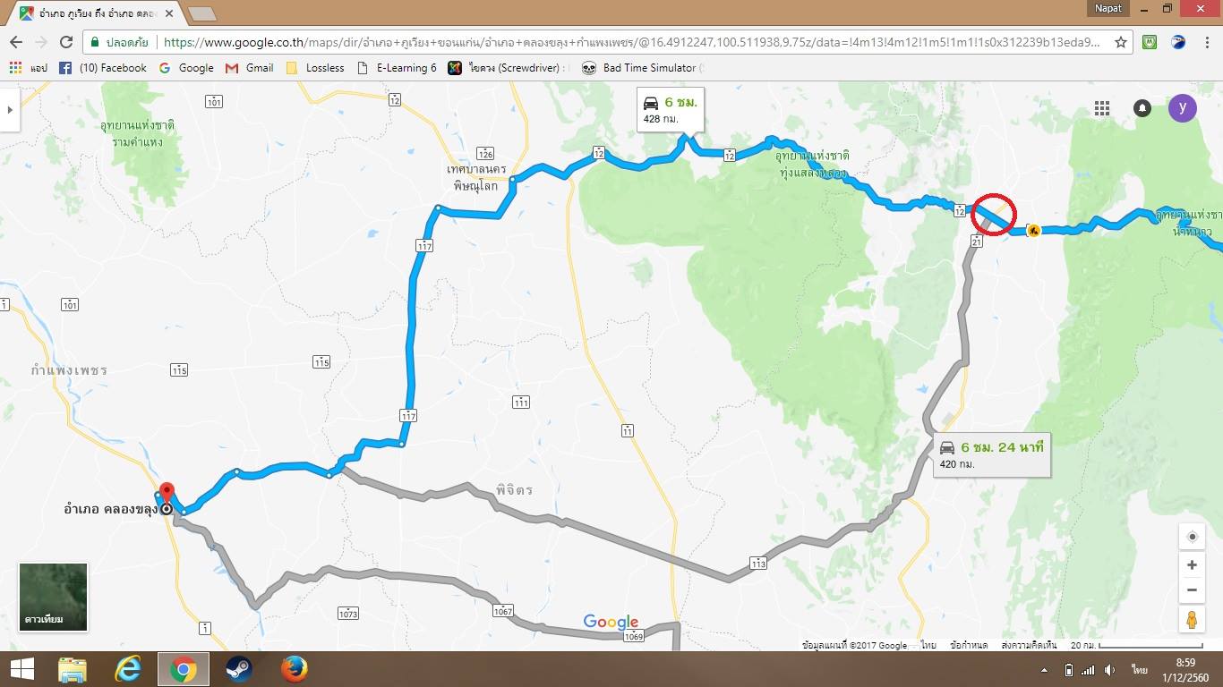 ค้นใน google แนะนำมาสองเส้นทาง คือ เส้นทางที่ 1 ออกจากลำปางไปทางถนนหมายเลข 11 จนถึงอุตรดิตถ์ เลี้ยวซ้ายไปอำเภอทองแสงขันธ์ นครไทย ไปเลย แล้วเข้าอุดร (ถนนหมายเลข1