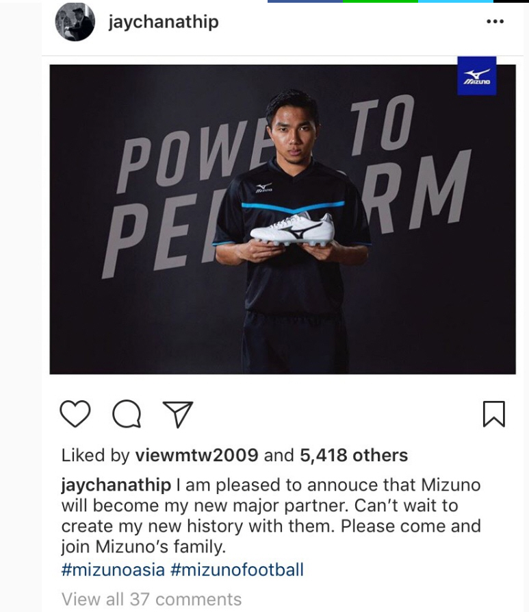 ...."มิซูโน่"แบรนด์กีฬาชื่อดังทำสัญญาให้เจ ชนาธิปสวมรองเท้าเป็นพรีเซ็นเตอร์อย่างเป็นทางการ...(เสียดายอดิดาสจังT-T)