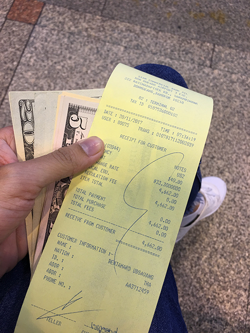 ด้วยความไม่รู้เรื่องของตัวเอง.. ที่พักอยู่แถวบางแค และการจะเดินทางไปแลกเงินนั้นสามารถไปแลกได้ที่ที่รับแลกเงินซึ่งมีมากมายก่ายกองทั่วกรุงเทพฯ ตอนนั้นเรทที่อื่นแลกกันที่ 1 USD - 32.90 THB แต่นี่คิดว่าสามารถเดินไปแลกที่ธนาคารตามห้างได้.. ก็เดินไปเลยจ้าาาาาาาาาาาาาาาา