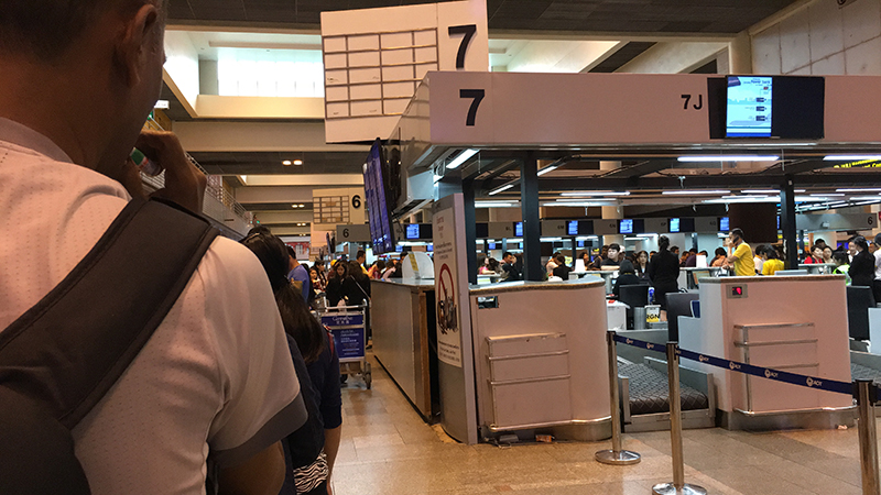 หลังจากนั้นก็เดินเข้าประตูผู้โดยสารขาออกระหว่างประเทศ ผู้โดยสารคนไทย หากสงสัยอะไรถามคนยืนตรงนั้นเลยฮะ.. นี่เดินไปแบบเด๋อๆ แล้วถามเค้า ‘คนไทยออกตรงนี้ใช่มั้ยคะ’ ก็มันไม่มีคนเข้าเลยเว้ยยย ช่องอื่นคนเต็มหมด อ่ะ! พอเข้ามาก็ต้อง