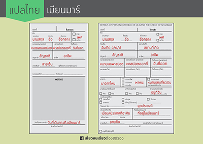 พอถึงเวลาขึ้นเครื่องก็ขึ้นเครื่องไปเลยค่ะ.. ไม่ต้องพะวง 55555555555 เดินยิ้มสวยๆ พร้อมยื่นพาสปอร์ตพร้อมตั๋ว แล้วเดินไปนั่งตามที่ที่ได้นั่ง ระหว่างอยู่บนเครื่องเค้าจะแจกใบตม.เข้าประเทศเมียนมาร์มาให้ เราก็เขียนๆ กรอกๆ ไป จะได้อยู่ 2 ใบ เซ็นต์ให้เหมือนกับลายเซ็นต์ในพาสปอร์ต ปล. ขอบคุณเจ้าของภาพด้วยนะคะ ช่วยชีวิตได้เยอะเลย