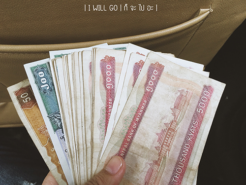 (แนะนำสำหรับคนที่อยากรู้ว่าเท่าไหร่ เราคิดแบบเอาเงินจั๊ตตั้งแล้วหารด้วยเรทที่แลกของดอลลาร์ แล้วค่อยนำมาคูณเรทแลกดอลลาร์เป็นไทย เช่น 7,500 Kyat/1,350 = ประมาณ 5.55 USD แล้วนำ 5.55x33.30 = 184.82 THB)