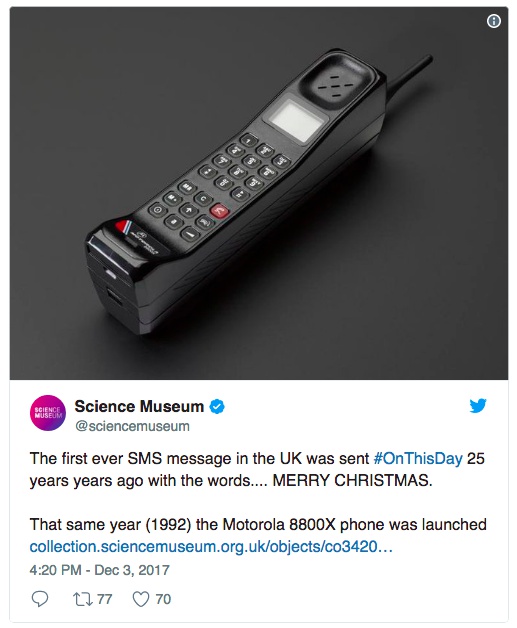 ข้อความแรกสุดถูกส่งเมื่อวันที่ 3 ธันวาคม 1992