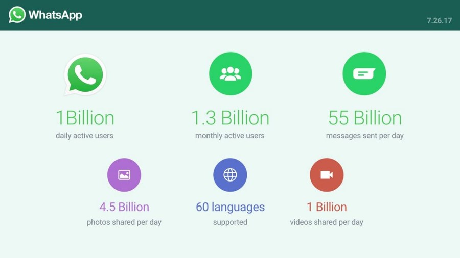 ใน WhatsApp เมื่อเทียบกับ 20 พันล้านข้อความที่ส่งทาง SMS