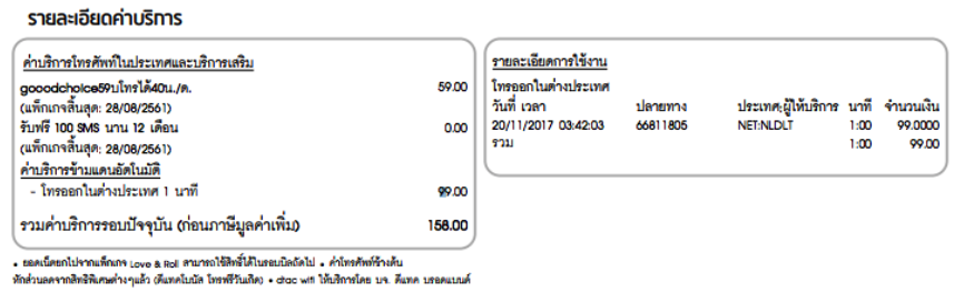 แต่เดือน ตค. ในใบแจ้งยอดการใช้บริการ แจ้งว่ามีการโทรต่างประเทศ 1 นาที คิดเงิน 99 บาท