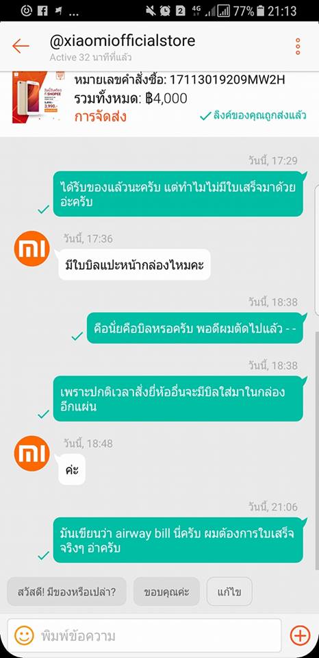 สั่งของจาก Xiaomi Official Store ใน Shopee ไม่มีใบเสร็จให้