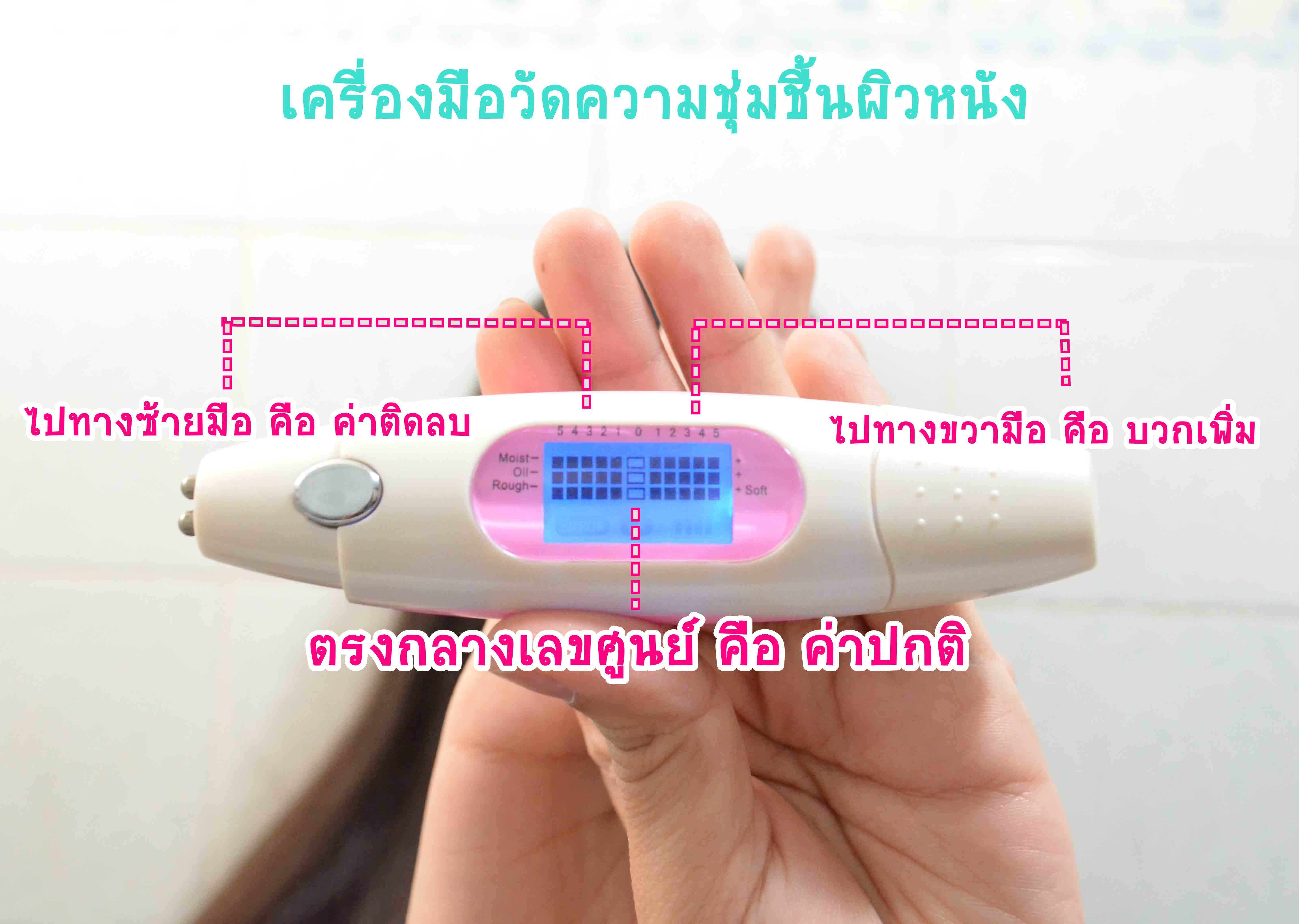 ซึ่งในขั้นตอนการทดสอบ เราเลือกใช้เครื่องมือวัดความชุ่มชื้นของผิว มีหน้าตาตามรูปด้านล่างเลย