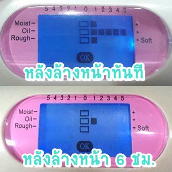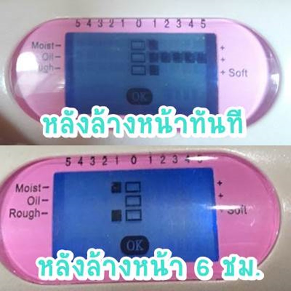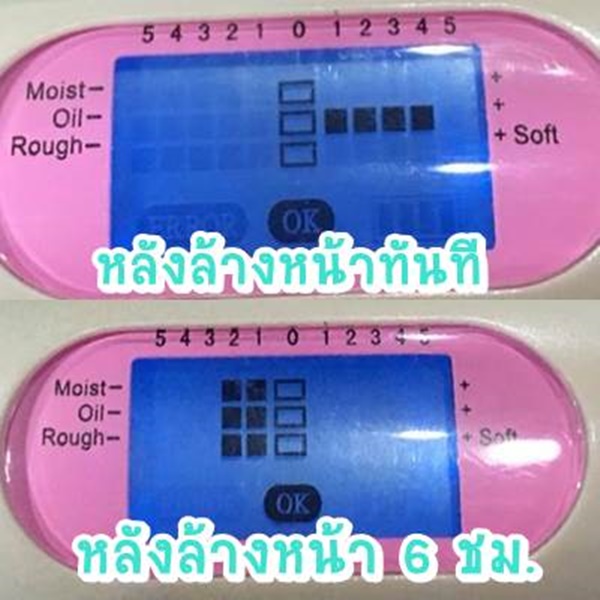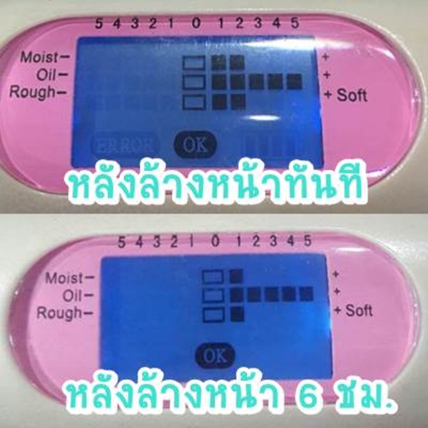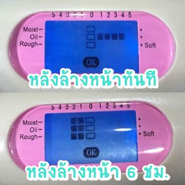 วัดความชื้นที่ผิว : 0 หรือเทียบเท่าค่าทั่วไป ผิวหน้ามีความชุ่มชื้นปกติ