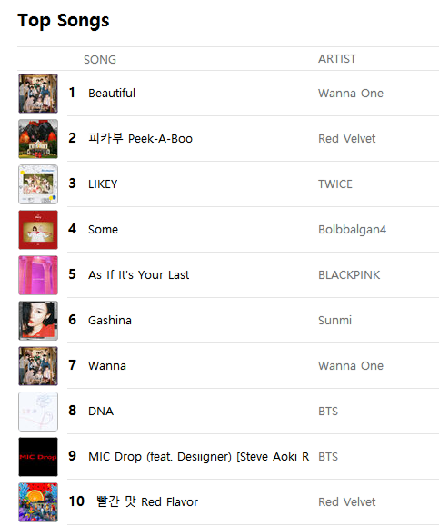 [K-POP] รายงานชาร์ต Top 10 K-POP Songs Apple Music & iTunes Store Thailand (07-Dec-17)