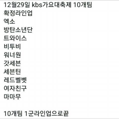 Line up งาน KBS Gayo Festival (©pannchoa) วันที่ 29 ธ.ค. 2017