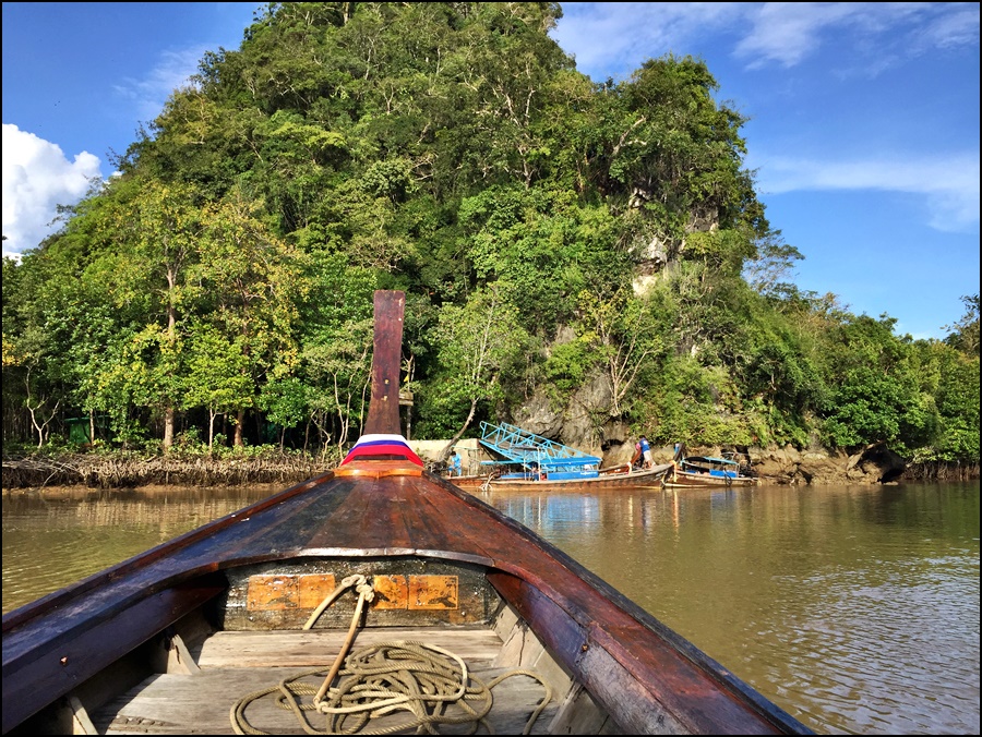เหมาเรือหัวโทงอยู่ที่ 500 แบบแวะไปชมเขาขนาบน้ำก่อน แล้วจึงไปร้านอาหารอีกฝั่ง