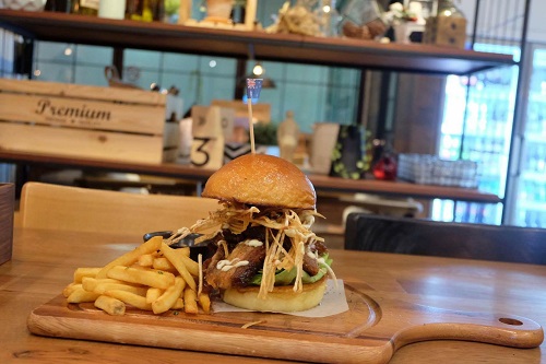 เมนูนี้ต้องทานทุกส่วนพร้อมกันค่ะ ขนมปังมีความหอมนุ่ม ไส้เบอร์เกอร์จะเป็น Maple Roasted Pork Belly คือหมูที่มีรสชาติหวาน
