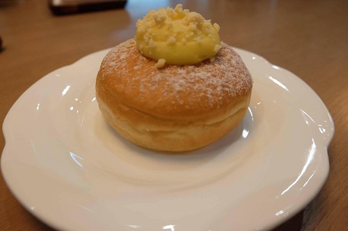 ตัวโดนัทนี่แป้งนุ่มมาก ตั๊กเลือกชิม 2 รส คือรสที่หอมกาแฟแบบเข้มข้นมาก หวานน้อย