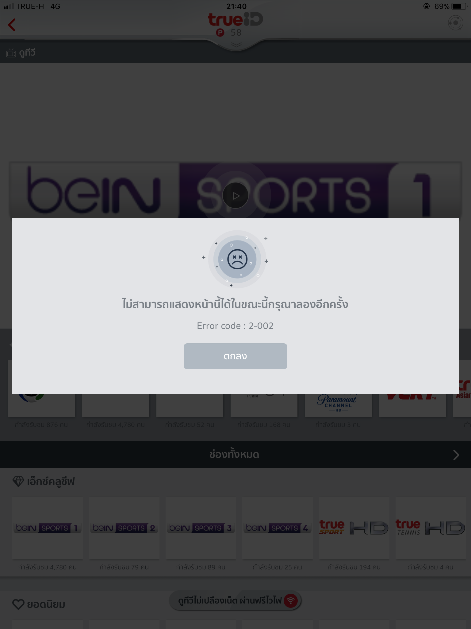 ใครเข้าดูบอลบน true id ไม่ได้บ้างครับ