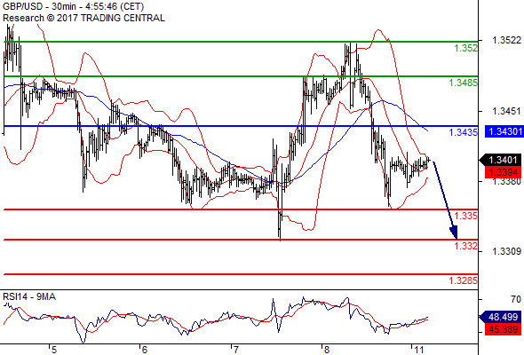 ความเห็นในเชิงเทคนิค: หากแนวต้านที่ 1.3435 ยังไม่เลยขึ้นไป ความเสี่ยงที่จะทะลุต่ำกว่า 1.3350 ยังคงสูงอยู่