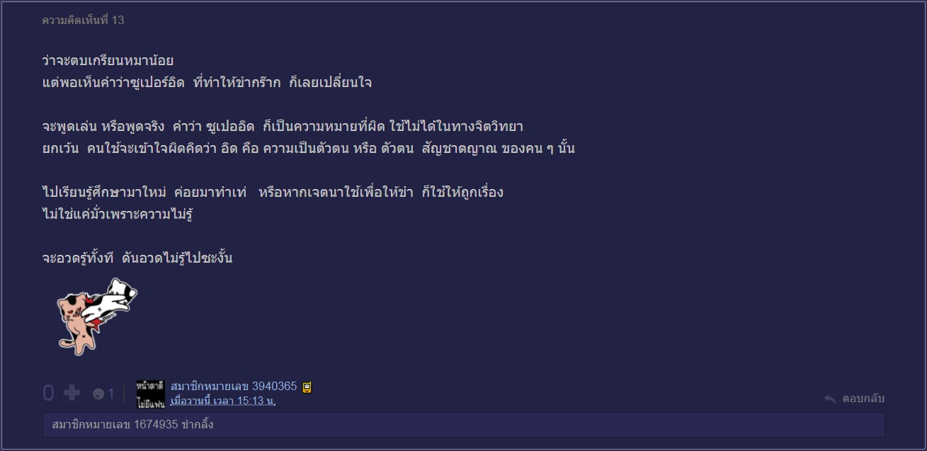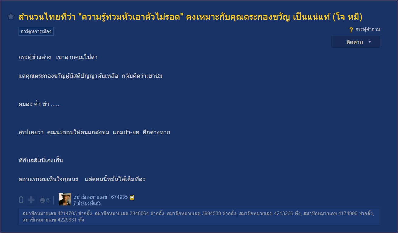 ว่าเป็นการเหน็บแนมเสียดสีผม ผมยังไม่รู้ตัว ยังเข้าไปร่วมเม้นท์อย่างเฮฮา