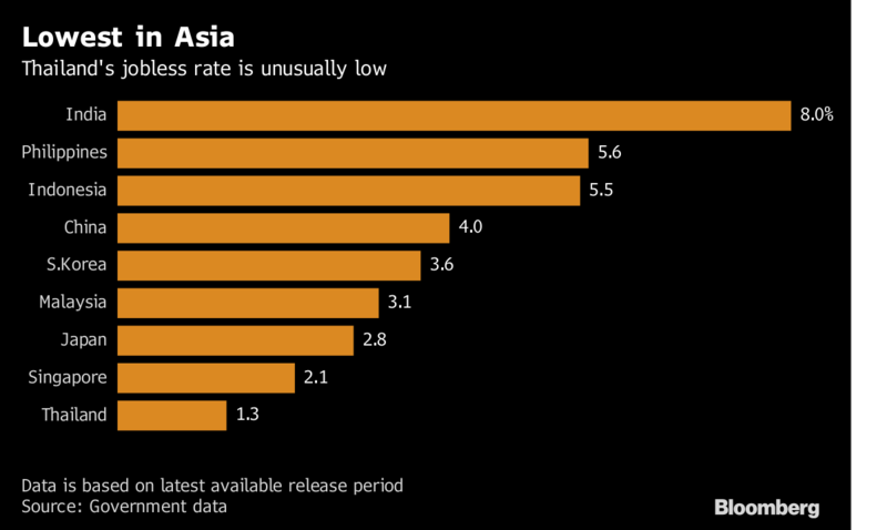 Indian Express ของอินเดียรายงานว่าอัตราการว่างงานของไทยต่ำลงเป็นประวัติกาล และจัดอยู่ในอันดับที่ต่ำเป็นอันดับต้นๆของโลก ซึ่งเป็นภาพที่ดูผิดปกติและสวนทางอย่างยิ่งกับสถานการณ์ทางเศรษฐกิจของไทย ที่กำลังเผชิญกับอุปสรรคมากมายในการเติบโตทางเศรษกิจ