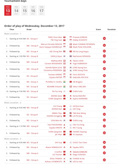 รายการ Dubai world superseries finals วันพุธ ที่ 13 ธ.ค. นี้ ทรูถ่ายกี่คอร์ท กี่คู่คะ