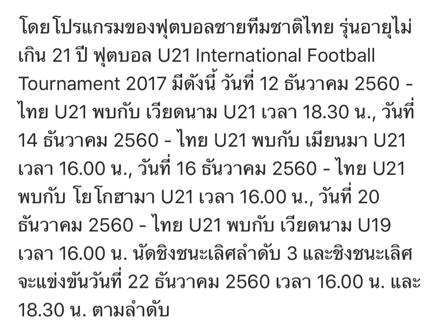 12/12/2017, 18:30 Thailand U21 vs. Vietnam U21 แต่ผมแอบหวั่นใจเอคโคโน่นิดๆ