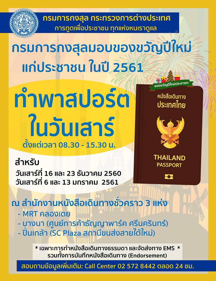 กระทรวงการต่างประเทศ โดยกรมการกงสุล มอบ "ของขวัญปีใหม่" ให้คนไทยทำพาสปอร์ตได้ในวันเสาร์!!!