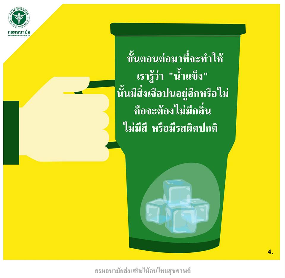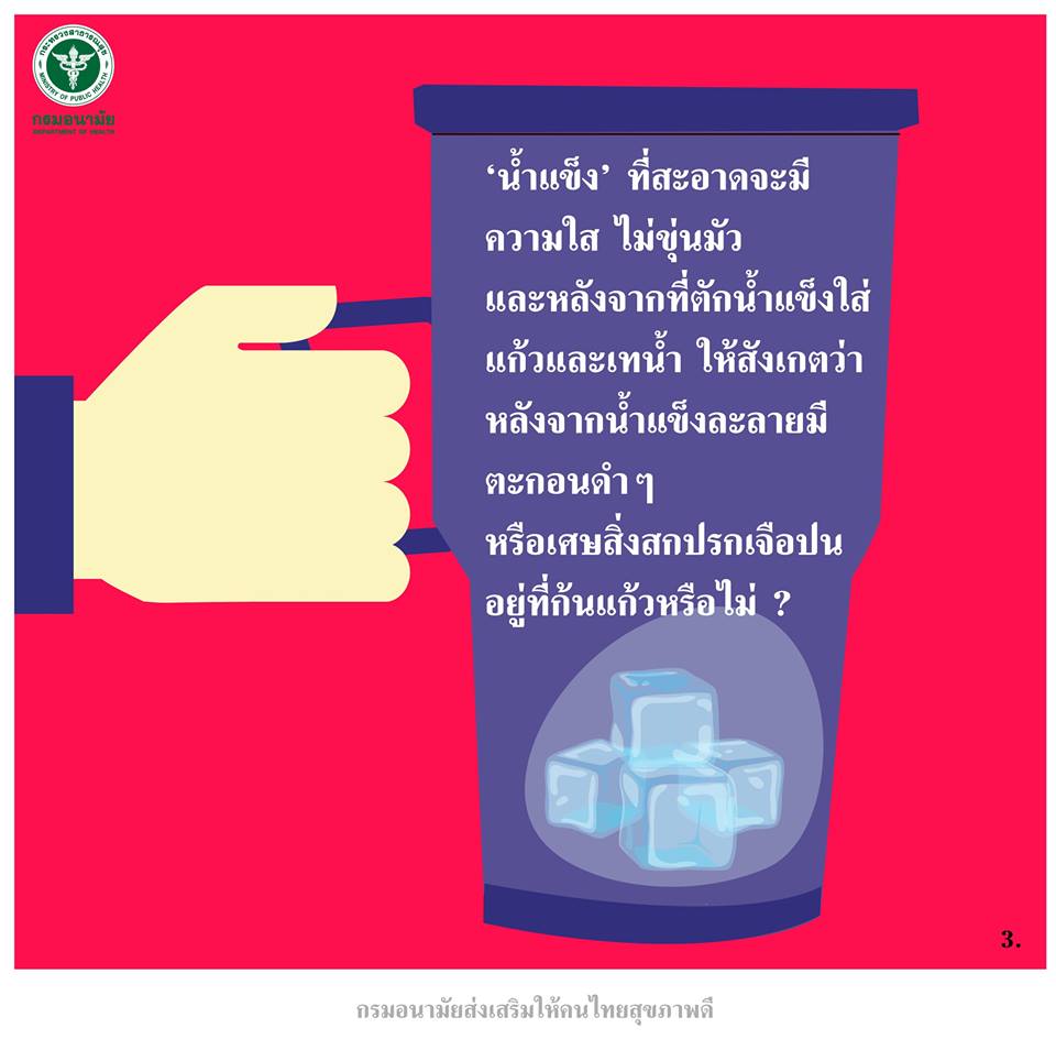 เราไม่สามารถรู้เลย "น้ำแข็ง" ที่เรารับประทานนั้นมีการผลิตที่ผ่านกรรมวิธีอะไรมาบ้าง การเลือกน้ำแข็งที่ผลิตจากเครื่องอัตโนมัติก็เท่ากับลดความเสี่ยงการเจือปนของการผลิต อาทิ ถุงบรรจุภัณฑ์ที่ไม่สะอาด การตัดน้ำแข็งให้มีขนาดเล็กจากอุปกรณ์ที่ไม่สะอาดขึ้นสนิม หรือการนำน้ำแข็งไปใช้ปนร่วมกับอย่างอื่น ซึ่งรายละเอียดบนฉลากที่เราต้องคำนึงถึงเป็นอย่างยิ่งคือ