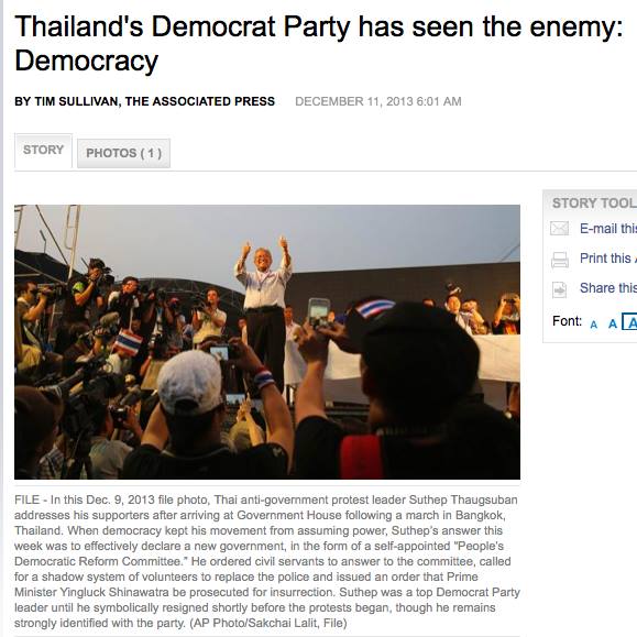 Thailand's Democrat Party has seen the enemy: Democracy แปลว่าอะไร ?