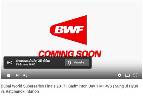 • ถ่ายทอดสดทางช่อง BWF Youtube รอบแบ่งกลุ่ม - รอบชิงชนะเลิศ (13 - 17 ธ.ค. 60)