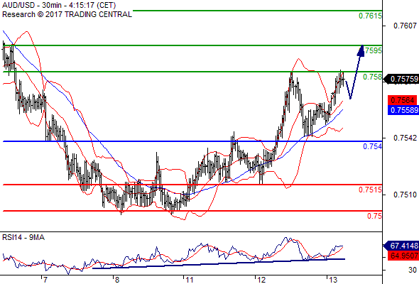 AUD/USD การซื้อขายระหว่างวัน: มุ่งไปที่ 0.7580