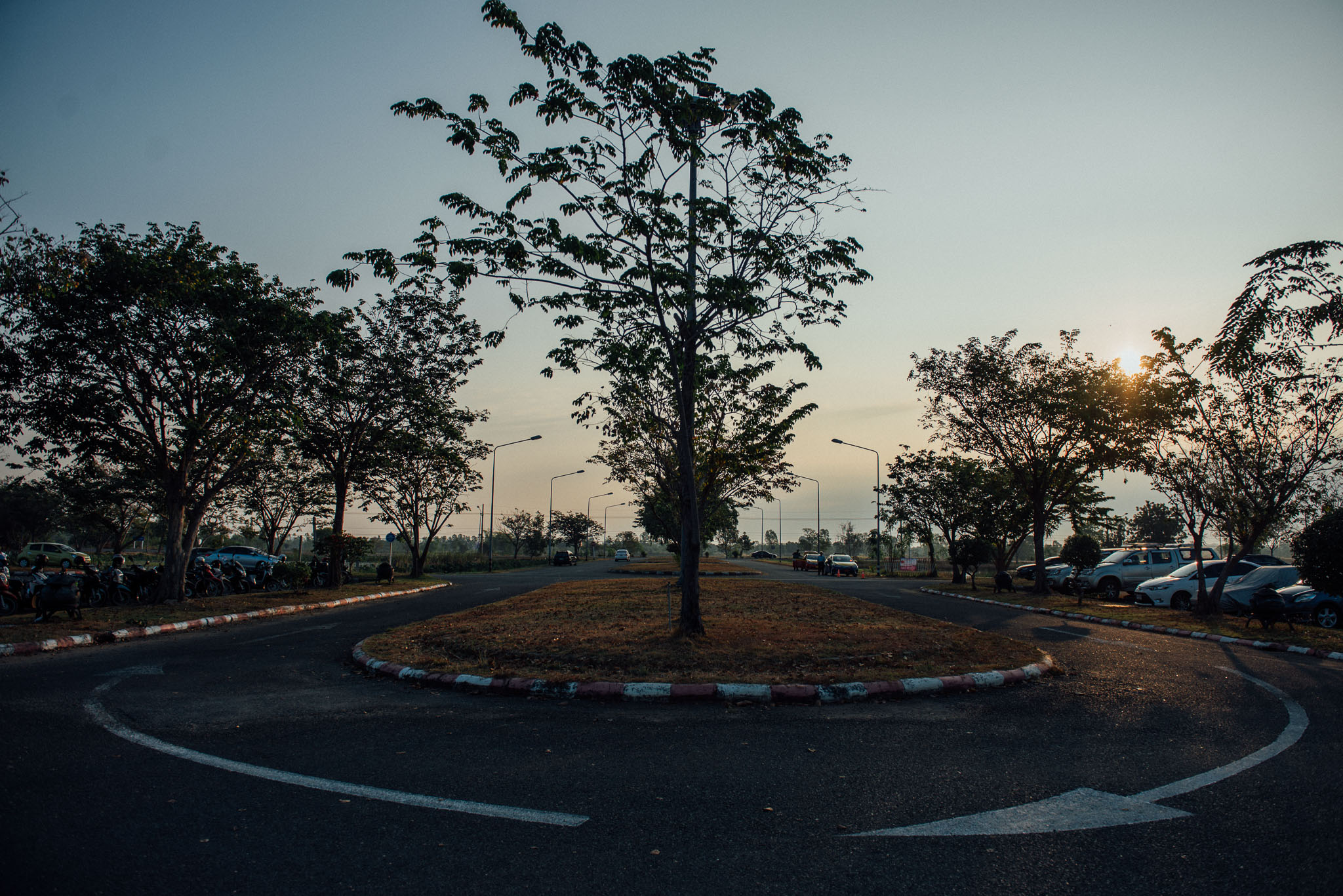 ฟ้าเริ่มมืดลงระหว่างทางที่เราขับรถกลับมายังสนามบินร้อยเอ็ดอีกครั้ง ถนนค่อนข้างมืด