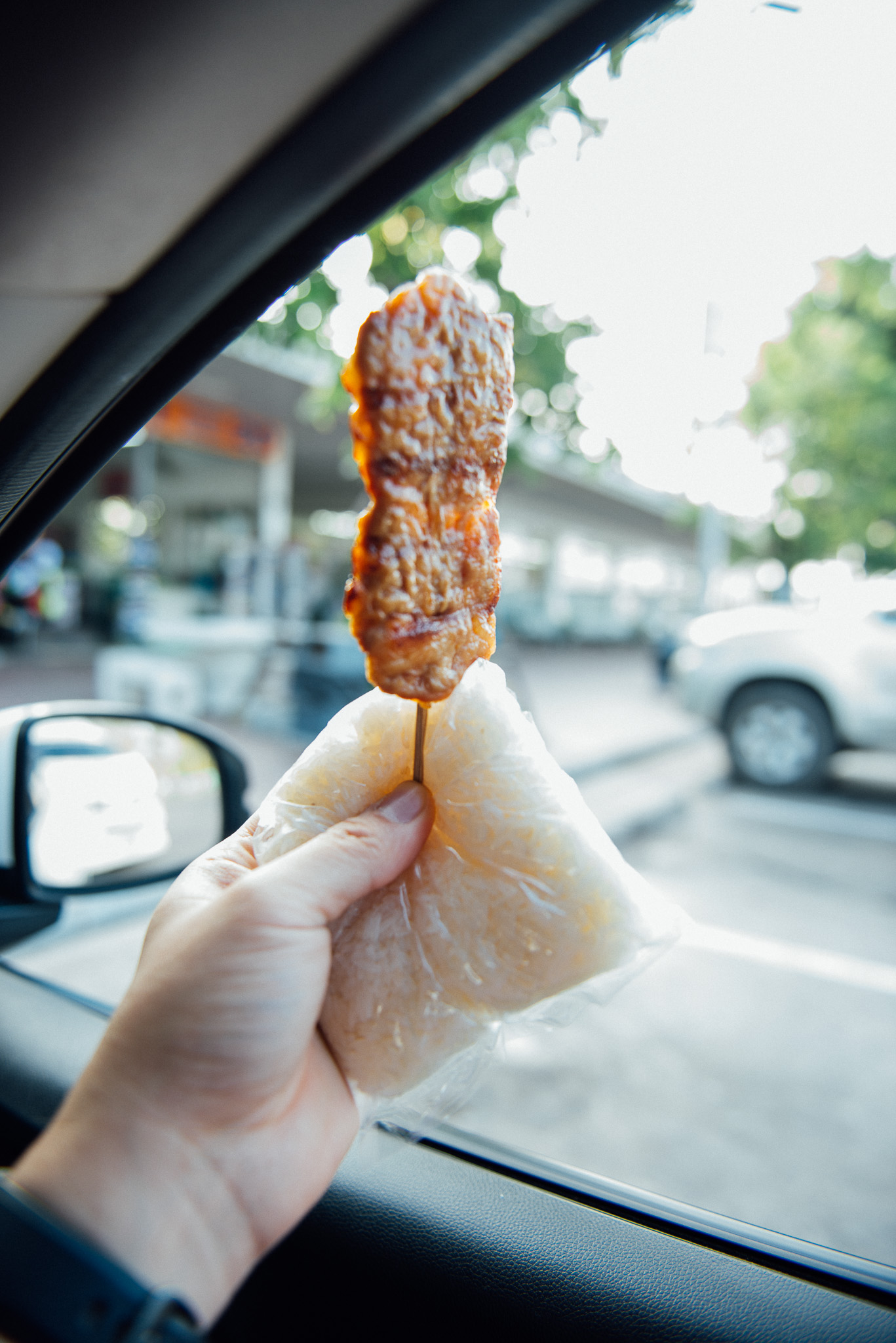 เช้าๆอย่างนี้คงไม่มีอะไรดีไปกว่า หมูปิ้งหอมๆ และข้าวเหนียวร้อน แถมด้วยเติมคาเฟอีนเข้าเส้นเลือดซักหน่อยด้วย