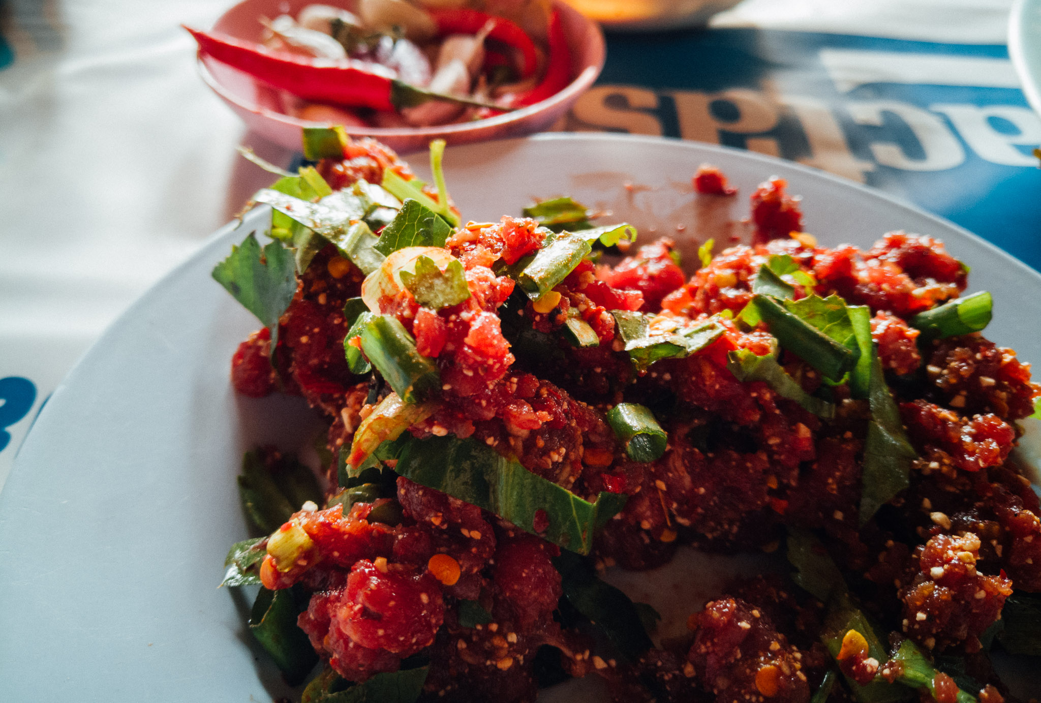 แล้วก็เลือกไม่ผิดจริงๆครับ อร่อยทุกอย่าง ไม่ว่าจะเป็นส้มตำ ลาบ น้ำตก ต้มแซ่บ ปลาเผา และที่เด็ดที่สุดก็คือ ก้อยเนื้อสด