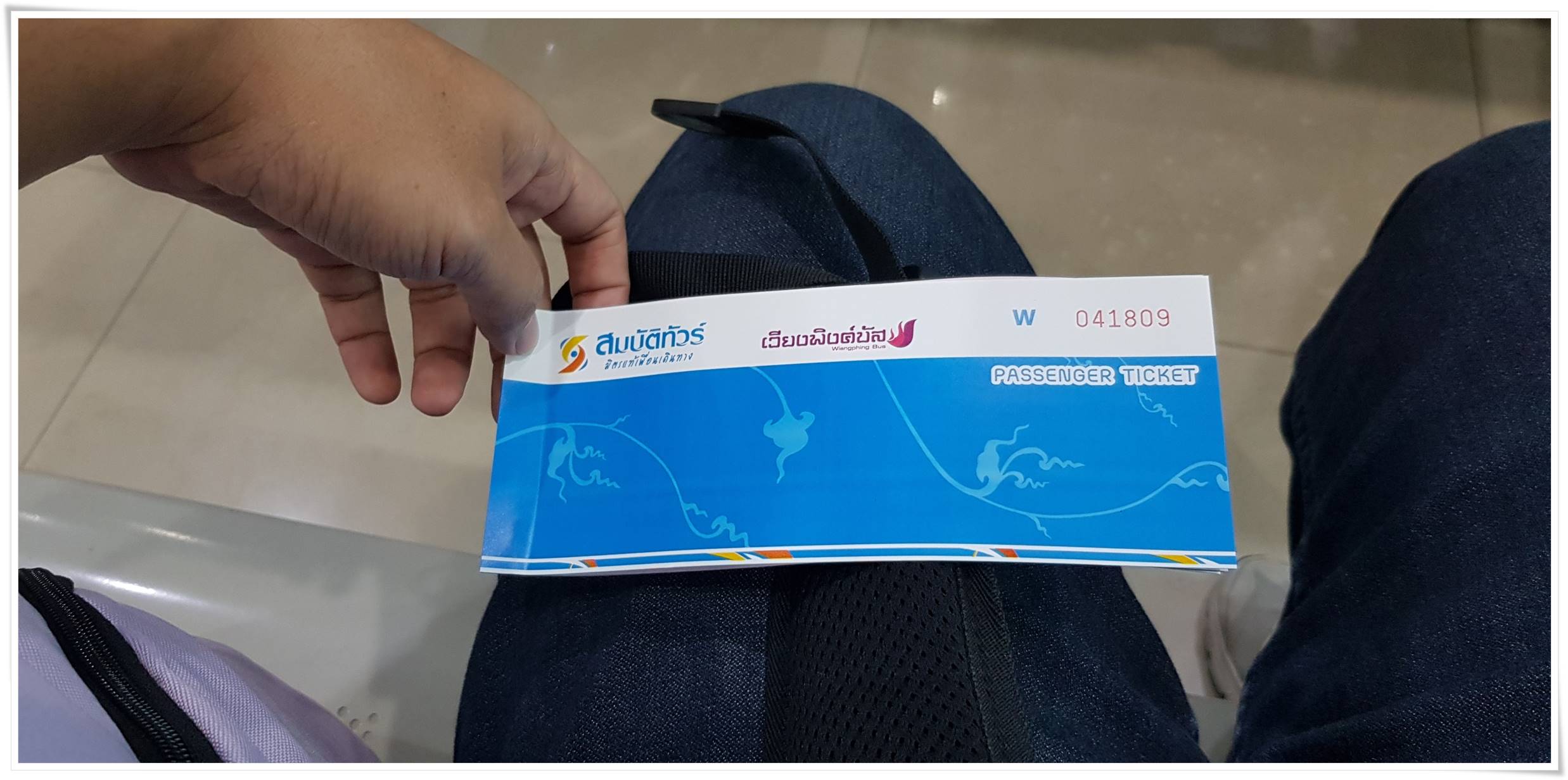 เมื่อมาถึงศูนย์บริการสมบัติทัวร์ ก็เดินไปออกตั๋วที่จุดขายเนื่องจากผมจ่ายโดยการหักผ่านบัตรเครดิตซึ่งสะดวกมากครับ โดยการนำเอาเอกสารที่ได้รับจากอีเมลล์มายื่นให้กับพนักงาน แต่ช่วงเวลาที่ผมไปนั้นระบบการออกตั๋วมีปัญหาทำให้ผมได้รับตั๋วที่เขียนจากมือของพนักงานมาแทนครับ