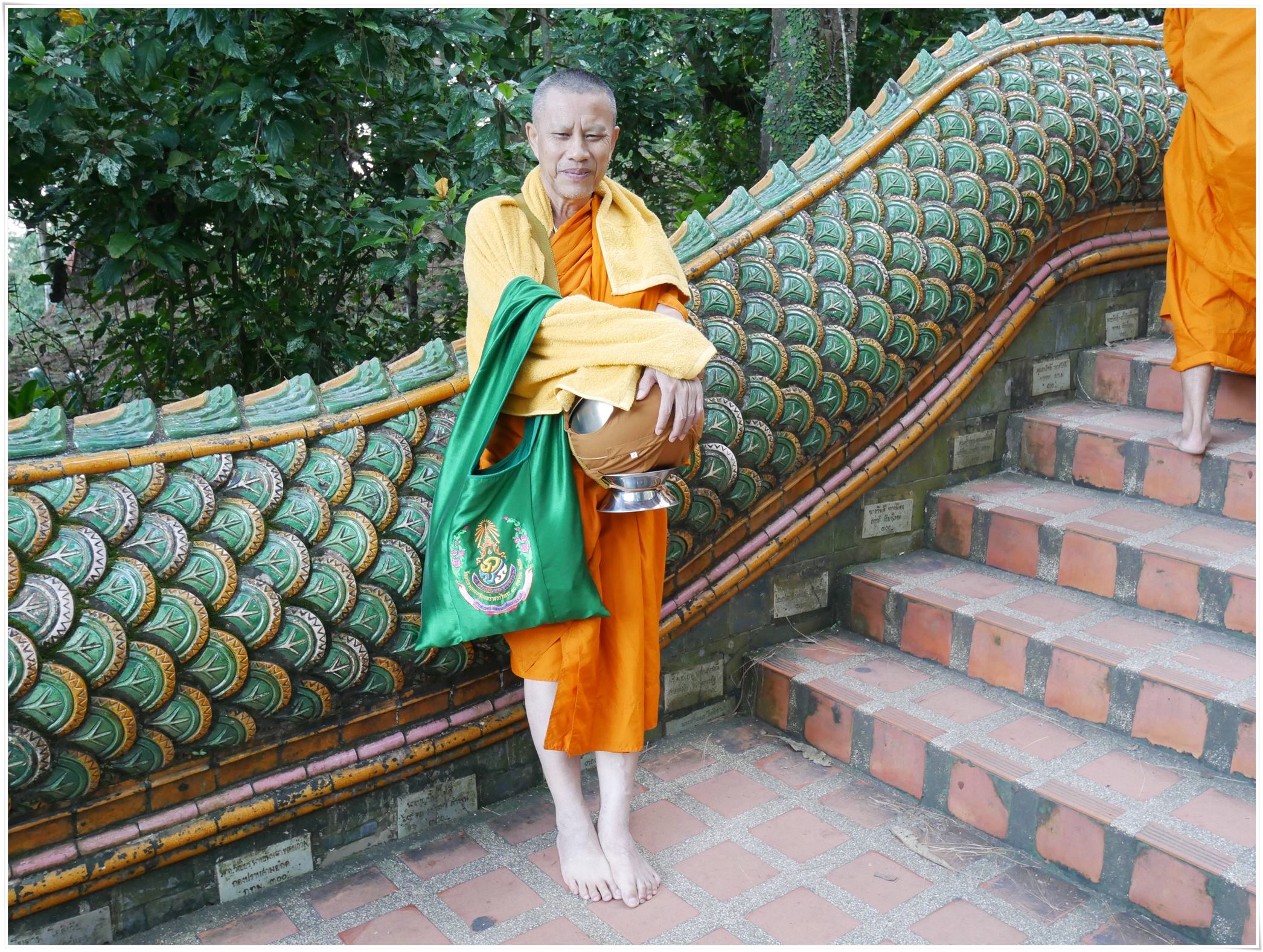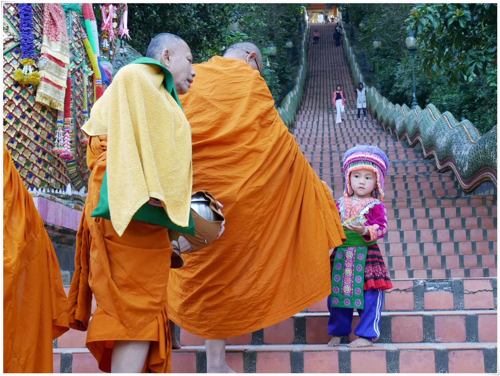 จังหวะพอดีที่ขึ้นมาถึงก็เจอกับหลวงพ่อที่กำลังจะเดินขึ้นวัดครับ โดยที่มีด่านคือเด็กน้อยที่รอเป็นนางแบบถ่ายรูป สิ่งที่น่ารักคือหลวงพ่อเอาขนมที่ได้มาแบ่งให้หนูน้อยด้วยครับ