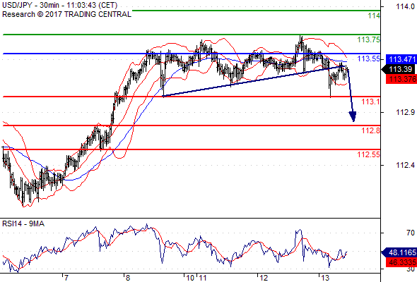 จุดที่ต้องการ: สถานะขายต่ำกว่า 113.55 เป้าหมายต่อไปที่ 113.10 และ 112.80