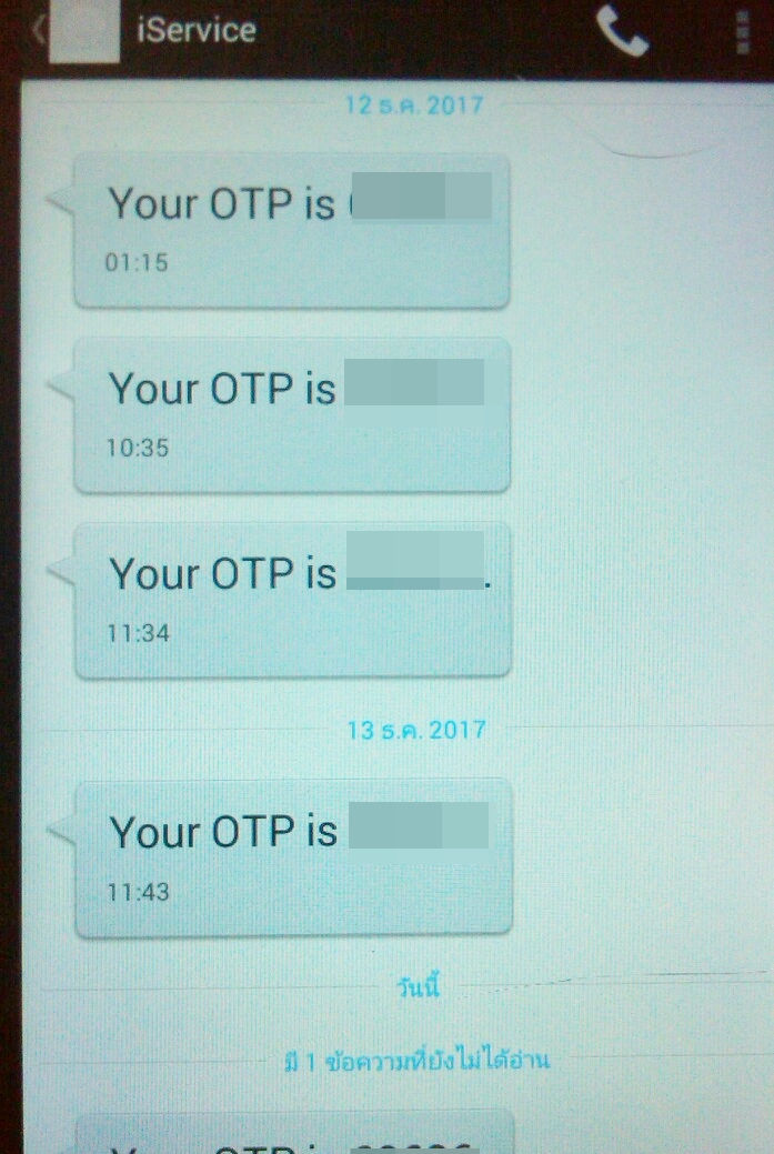 ได้รับSMSจากiServiceเป็นรหัสOTPแต่ไม่ได้สมัครหรือเข้าระบบอะไรเลย คืออะไรคะ